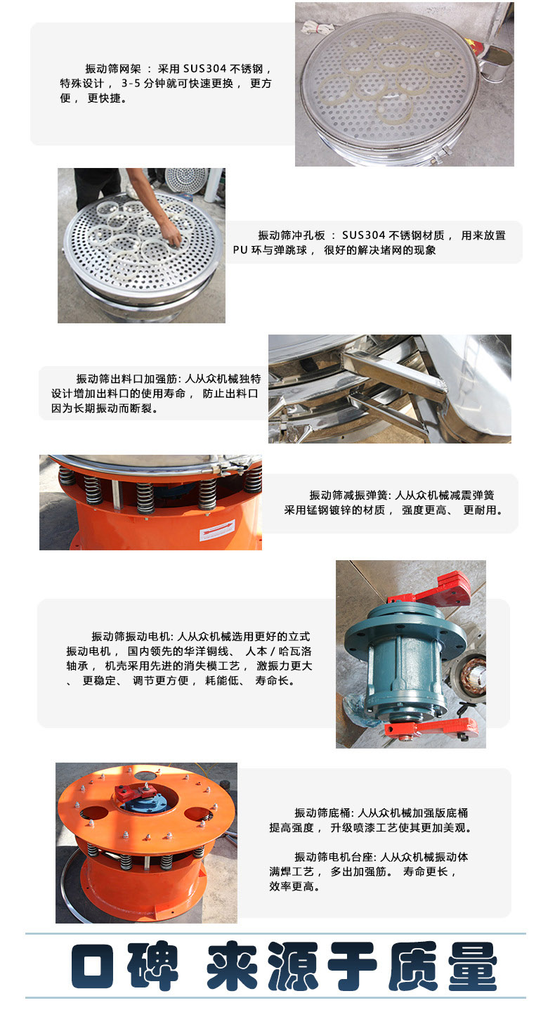 超声波旋振筛适用于500目、600目中药粉、合金粉末、钼粉、碳化硅、磨料、稀土、不锈钢粉、钨粉、镍粉、钴粉、粉末涂料、石英粉、丁米酮粉、电磁粉、硅微粉、麦芽粉、病毒唑、咖啡粉、负极材料、激光粉、氧化铝等。