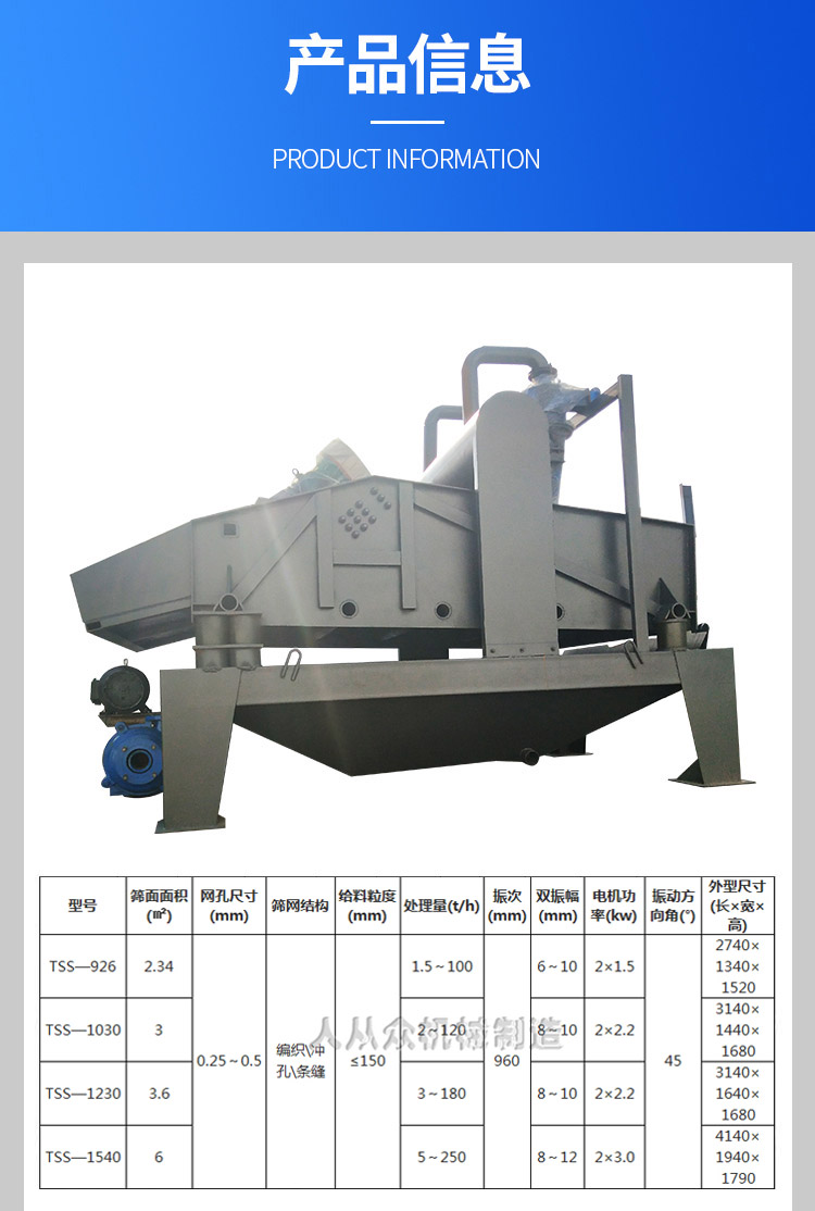 Product introduction细砂回收机的主要作用是对砂石清洗、脱水、分级、能够很好的回收传统制砂行业中洗砂机流失的大量细砂,提升经济效益的同时、降低了尾料的处理费用及流失细砂对环境造成的污染、破坏。该机广泛应用于水电站砂石骨料、陶瓷原料、石英砂的加工系统,人工制砂生产线,选矿厂尾矿回收等,可有效解决细砂、细料的回收问题。